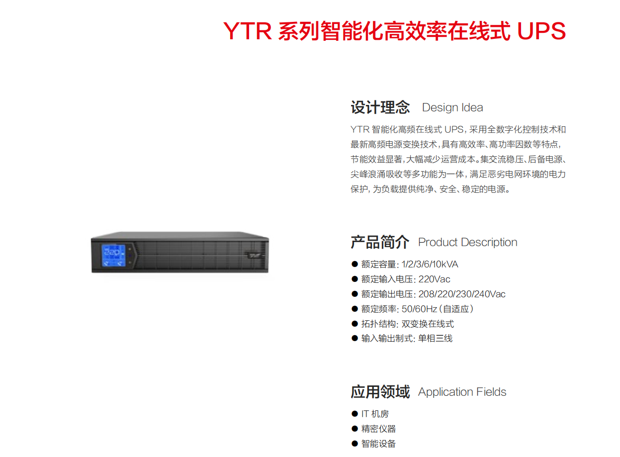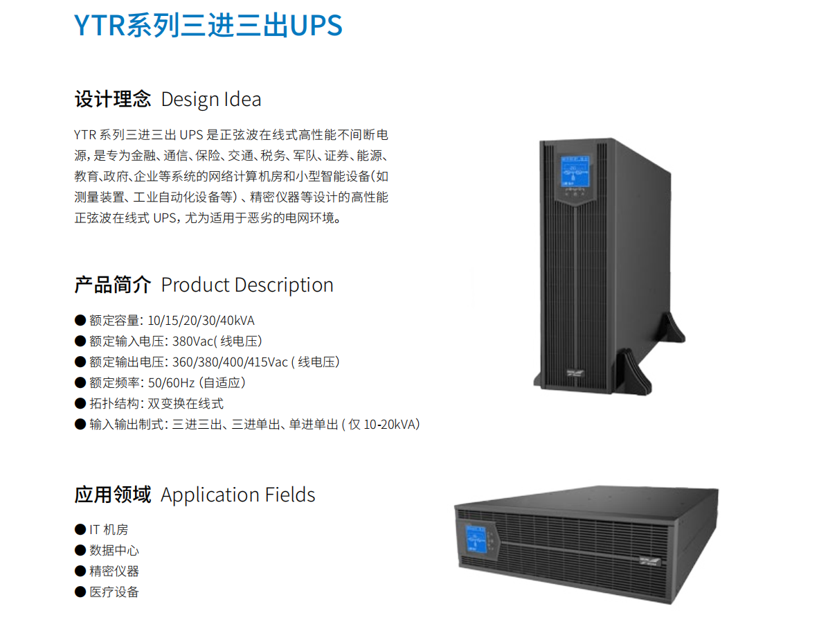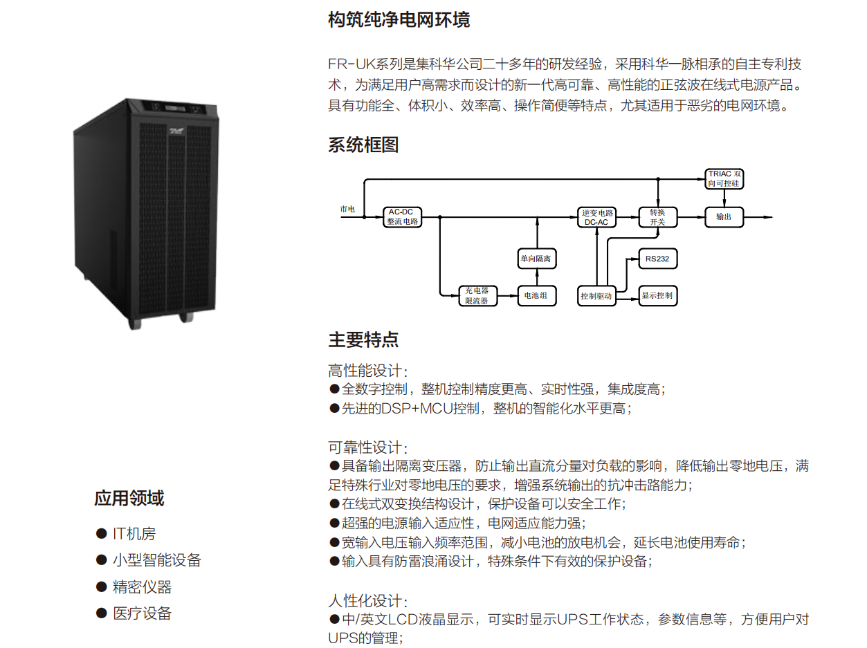 特點:智能化高頻在線式UPS電源,采用全數字化控制技術和最新高頻電源變換技術,節能效益顯著,大幅減少運營成本。
