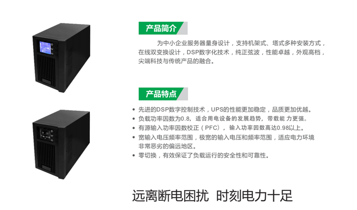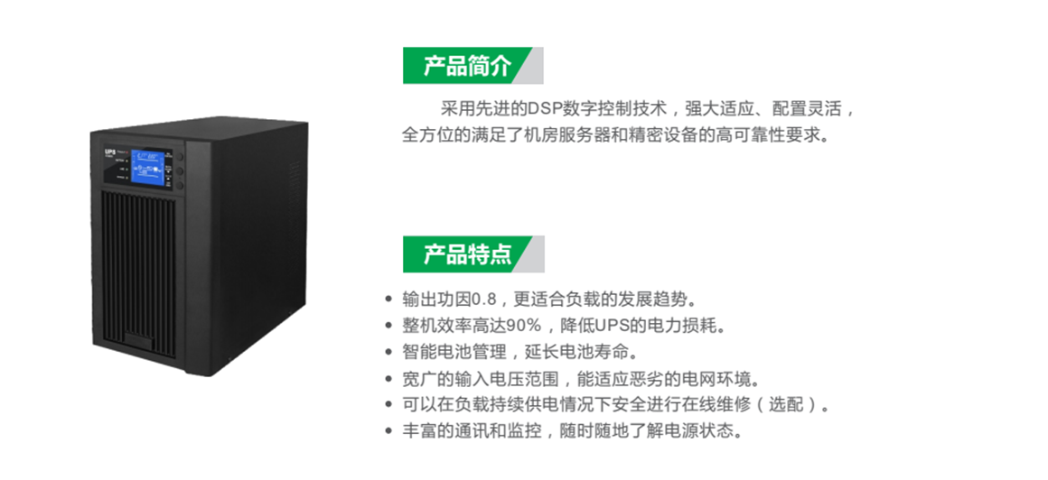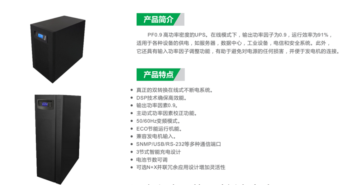 諾曼頓科UPS電源高效率在線雙變換技術,NM系列使用在線雙變換技術,50%負荷使用時效率高達96%以上,25%輕負荷時效率達到95%,節能效果顯著,降低總使用成本(TCO)。UPS優勢:易于安裝和維護內置維修旁路保證UPS在維護時為關鍵負載提供連續供電,為了方便安裝與維護,所有的控制面板和連接器都是正面操作。
