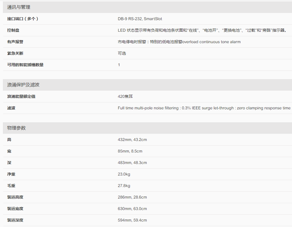 產品名稱:APC公司的Smart-UPS RT