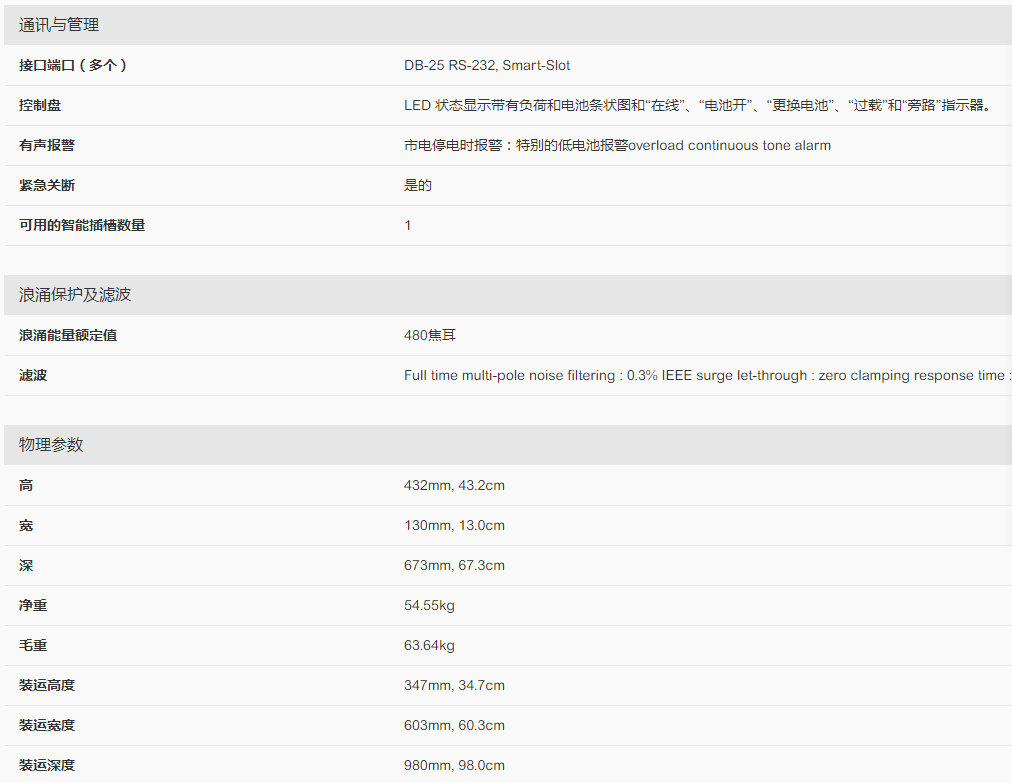 產品名稱:APC公司的Smart-UPS RT